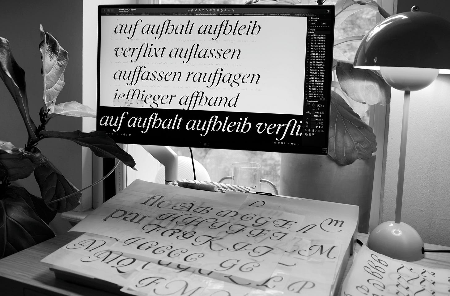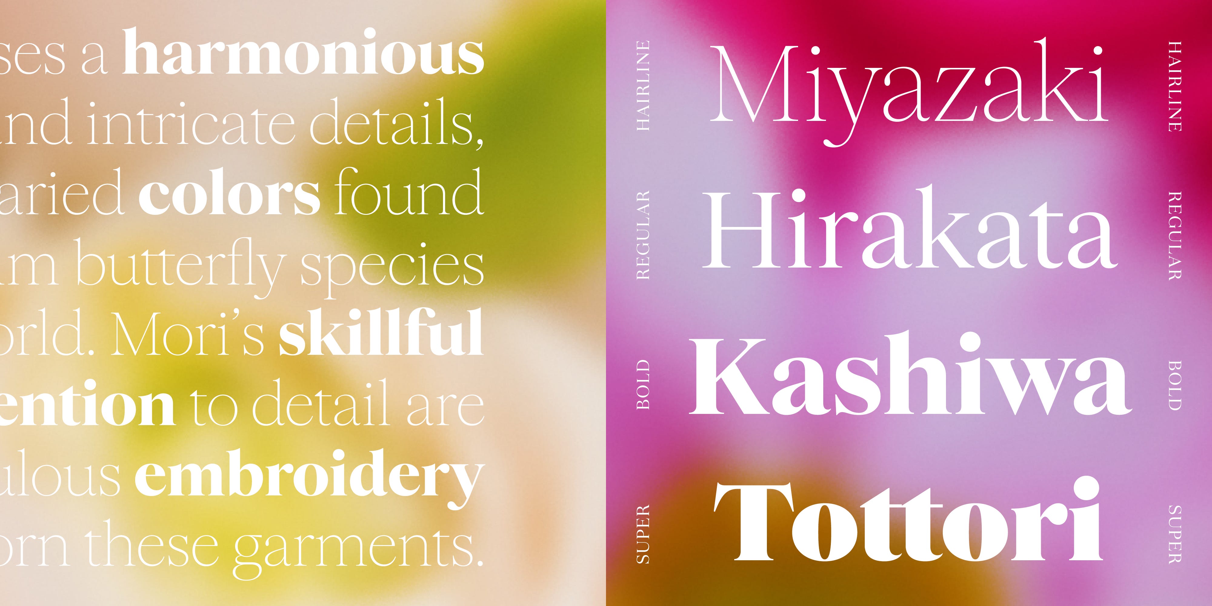 Ayaka: Flavia was a big factor in that, too. She makes some of the thinnest, most beautiful light weights, and she really enjoys that challenge. So the technical side of that crispness came a lot from her. Since I was working with the hairline queen, I thought it would be a good opportunity to try and make the lightest Hairline possible, without losing the high contrast. The fashion industry was another influence since many high-end brands use lighter, and hairline fonts in that space.