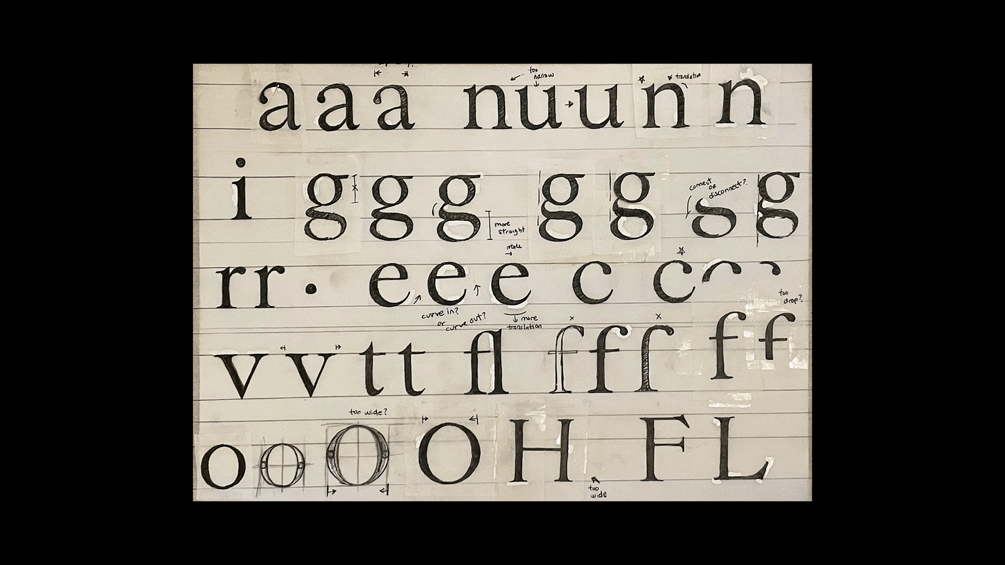 Early on, I made a mood board of its general aesthetic. I wanted something timeless and elegant. We collected a lot of type specimens from the 1600s to the 1900s. Caslon specifically was a big inspiration, particularly from the 1700s. One thing I really love about Caslon is its very round rounds—but overall the typeface is still too narrow for me. On the other hand, Flavia was interested in bringing more neutrality, leading us to also look at various versions of Times New Roman.